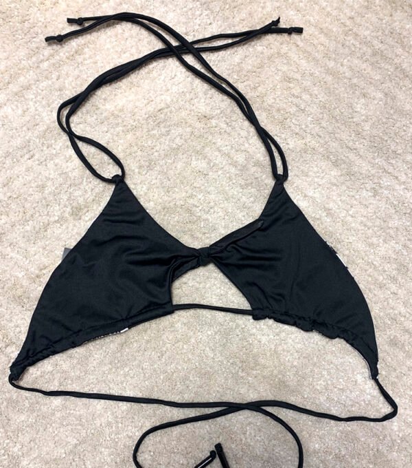 Bikini tipo top con nudo en el centro y breteles dobles. Lycra doble sin costuras, 100% forrado.